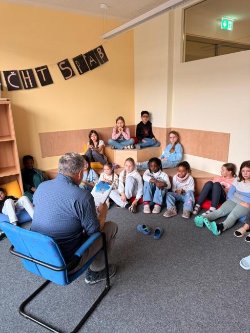 Die Auswahl der Bücher war bunt und abwechslungsreich: Von modernen Titeln wie „Das Farbenmonster“ oder „Als die Oma das Internet kaputt machte“ bis hin zu klassischen Kinderbuchhelden wie Pumukl war für jedes Kind etwas dabei. Die Schülerinnen und Schüler hörten aufmerksam zu, stellten Fragen, tauschten sich über ihre Eindrücke aus und entdeckten gemeinsam die Freude am Lesen.